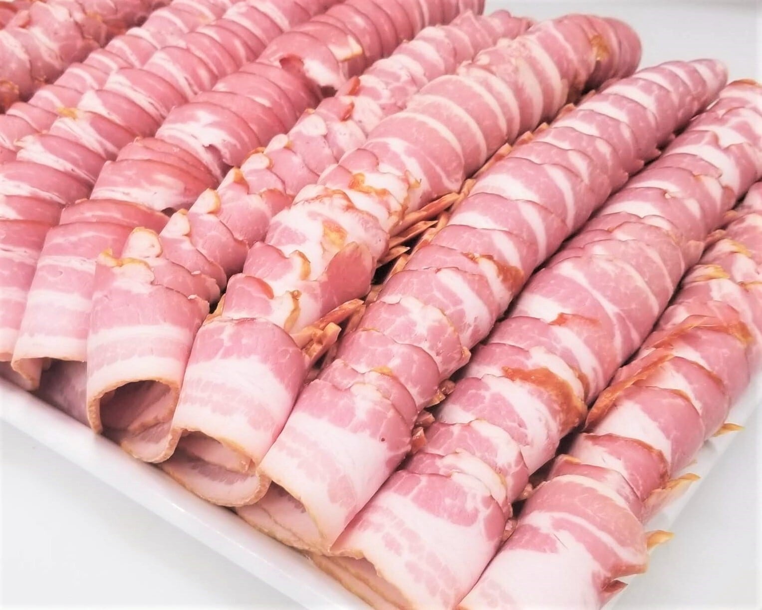 富士ハム 熟成ベーコンのスライスです。1枚毎乾塩法により丁寧に食塩等を塗り、じっくり塩漬期間を取ることによって、肉の旨みが十分に引き出された熟成ベーコンです。